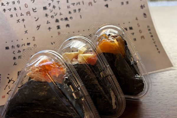 全てのおにぎり、豚汁と味噌汁も食べ歩き可能なテイクアウトにも対応しております。