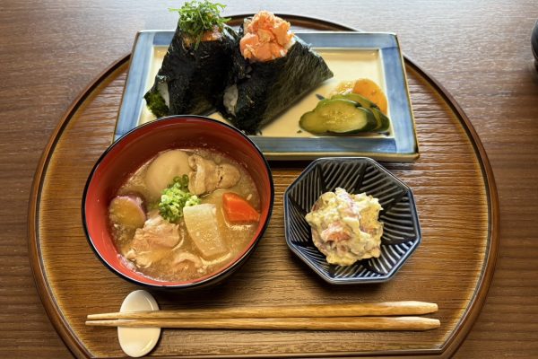 お好きなおにぎりに+500円でお味噌汁、+650円で豚汁の定食セットをご用意させていただいてます。モーニングとしてもご利用くださいませ。